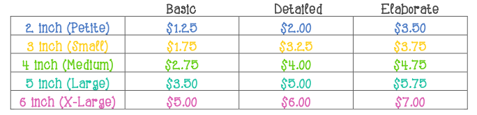 - Customer picks the size and how detailed of a cookie based on the chart below.